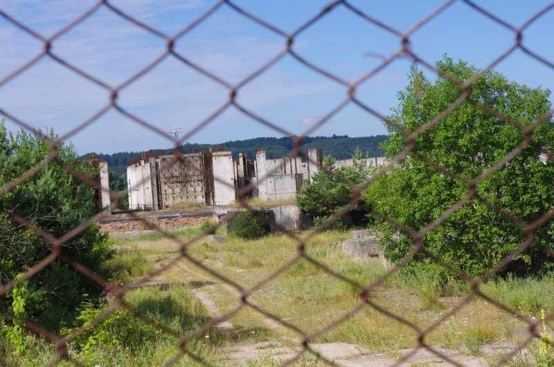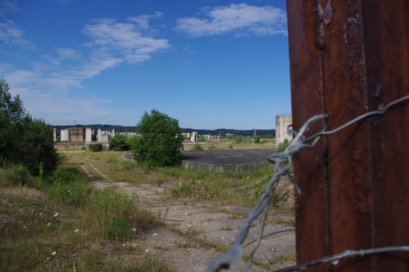 Część południowa jeziora to zupełnie inna historia. Na przestrzeni wielu hektarów tak zwana "Specjalna Strefa Ekonomiczna Żarnowiec", czyli wiele hal produkcyjnych. Prawdziwa dzielnica fabryczna. Wśród tych zabudowań także coś po co tam byłem: elektrownia atomowa. Kompletnie opuszczone, szare betonem i zielone zarastającym zielskiem. Ten teren leży niedaleko od jeziora, planowane instalacje miały korzystać z jego wody.