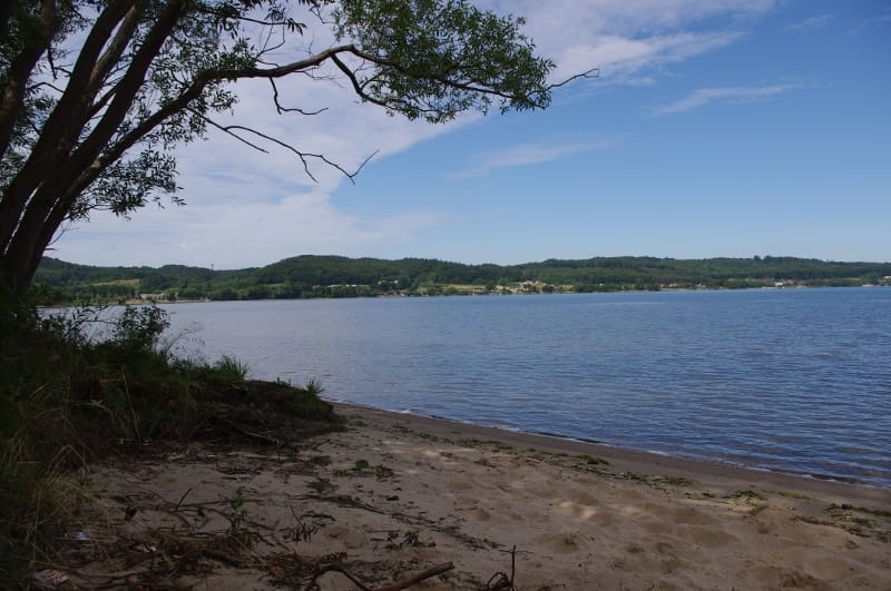Sam Żarnowiec to miejscowość oddalona kilka kilometrów od Jeziora Żarnowieckiego. Można znaleźć tutaj duży kościół z dobudowanymi zabudowaniami klasztornymi. Po drugiej stronie ulicy szkoła podstawowa, którą w 1903 roku wybudowali Niemcy. Miejscowość jakich wiele. Najbliżej jest na północny koniec jeziora, około dwóch kilometrów. Ta strona zbiornika to ostoja ciszy i spokoju. Tutaj to już wieś Lubkowo czyli gospodarstwa rolne, działki rekreacyjne, mnóstwo tablic z ogłoszeniami o wolnych pokojach. Trochę denerwuje, że nie można sobie przejść plażą wyjątkowo czystego jeziora Żarnowiec, bo każdy chce mieć kawałek jego tylko dla siebie. Co chwile ogrodzenia, takiego nagromadzenia tabliczek ostrzegających, że to "teren prywatny" oraz "jeśli on cie nie zagryzie to ja cie zastrzele" nie widziałem jeszcze nigdzie. Niewiele przejść, żeby można było zobaczyć wodę. Jak już się dojdzie widać jak jest czysto.