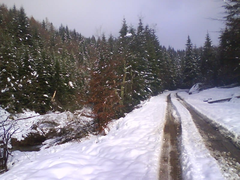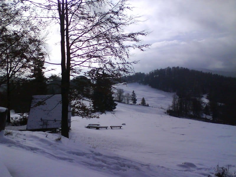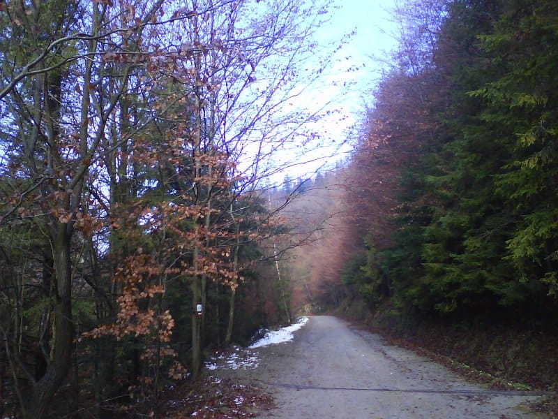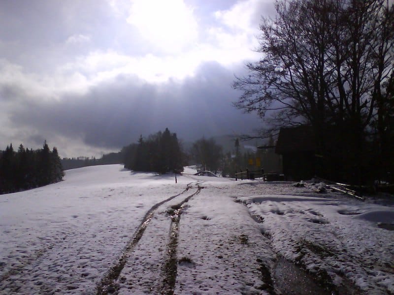 Oczywiście nie wysiedziałem w domu na miejscu i tylko czekałem jak przestanie padać deszcz. W końcu dostałem swoją szansę i poszedłem na szlak. Było cicho, temperatura około zera, a słońce świeciło. Po prostu pięknie. Od około 700 m npm śnieg leżał na stałe po kostki, a im wyżej tym było go więcej. Gdy doszedłem na górę do schroniska nad Wierchomlą śniegu było tak do połowy łydki. Jak szedłem szlakiem prawie 1000 mnpm to śniegu już było prawie po kolana. Po prostu cudnie!