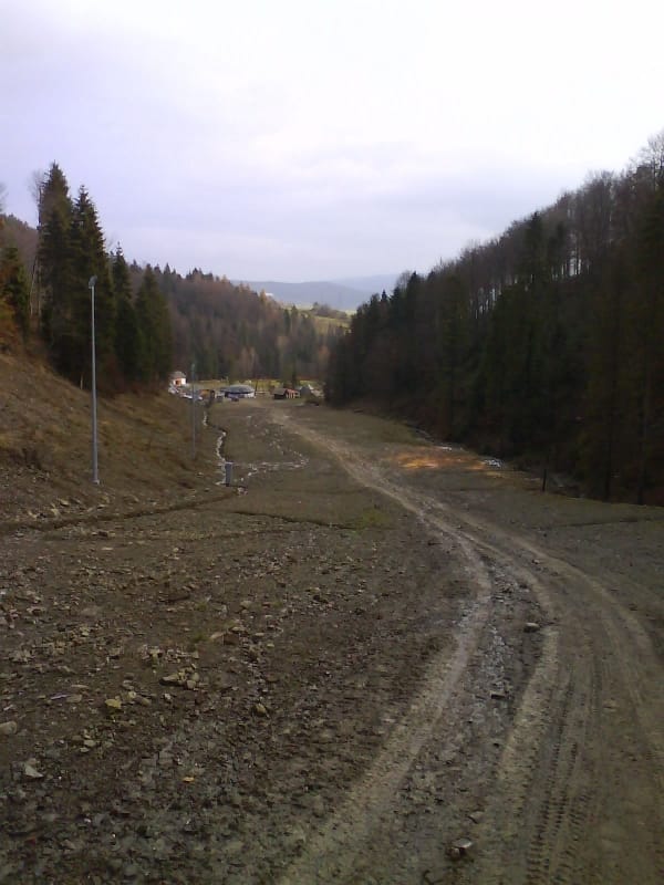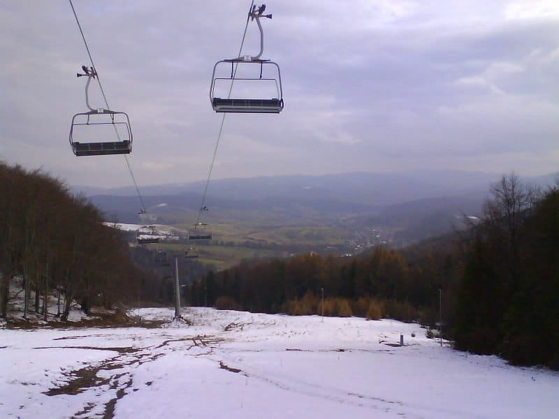 Wyciągi jeszcze nie uruchomione, pustki. Ale już kolejkę krzesełkową co chwilę uruchamiali testowo. Nie da się ukryć, sezon blisko. I znów zejście poniżej pewnej granicy to powrót do jesieni.