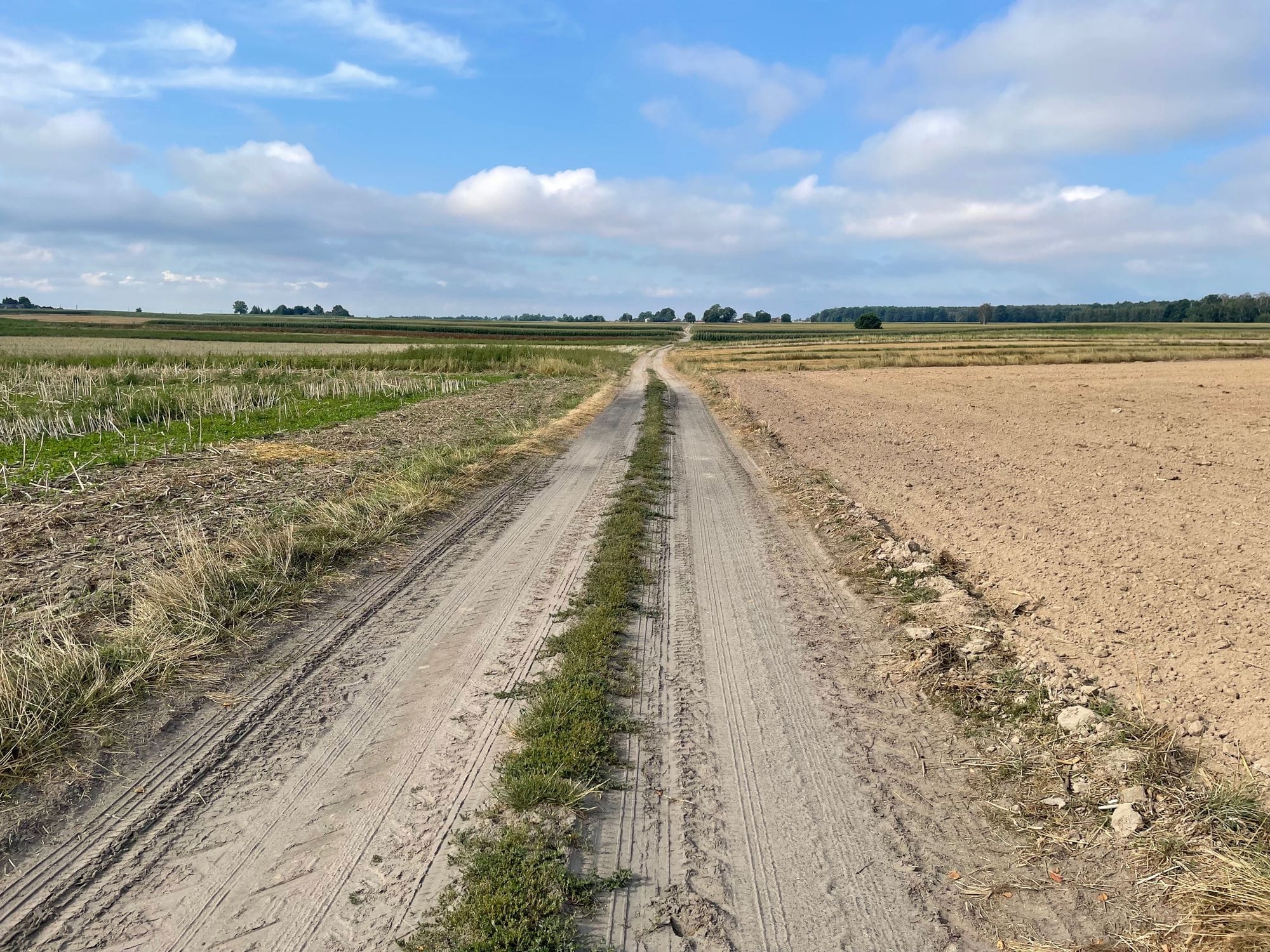 Trasę wyznaczyłem w google_mapsach w opcji rowerowej. Pierwsza część była jak marzenie - w większości poprowadzona dobrymi szutrówkami czy ubitymi polnymi, jak trafiała się asfaltówka to o małym ruchu. Trasa skręcała w stronę Wisły i prowadziła w jej wzdłuż.